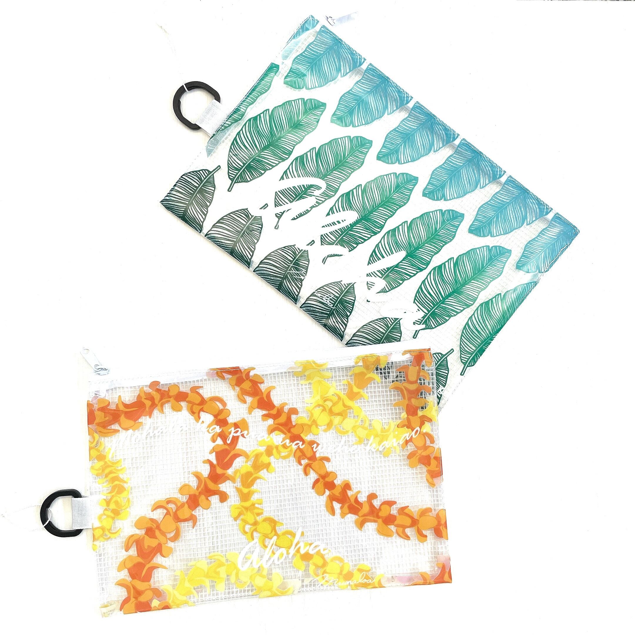 しっかりとした生地で、中身も見える便利なクリアメッシュポーチは、フラのイベントやレッスンのときの小物を入れたり、日常使いにはもちろん、旅行やアウトドアシーンでも活躍します。