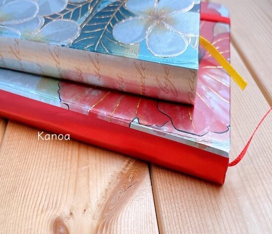 水彩画のような優しい雰囲気のハイビスカス。バンドのゴムとしおりは赤です。